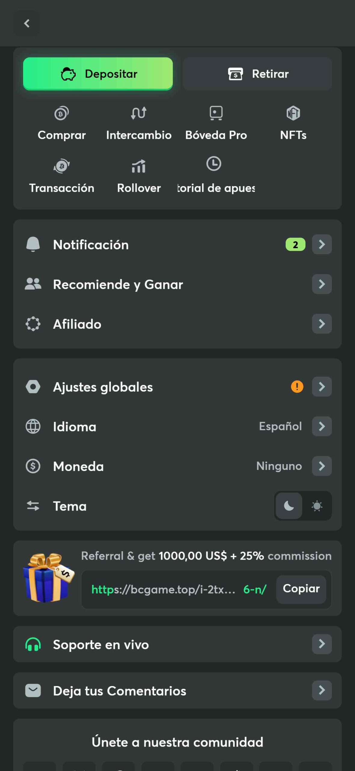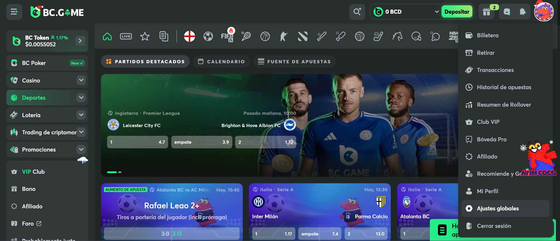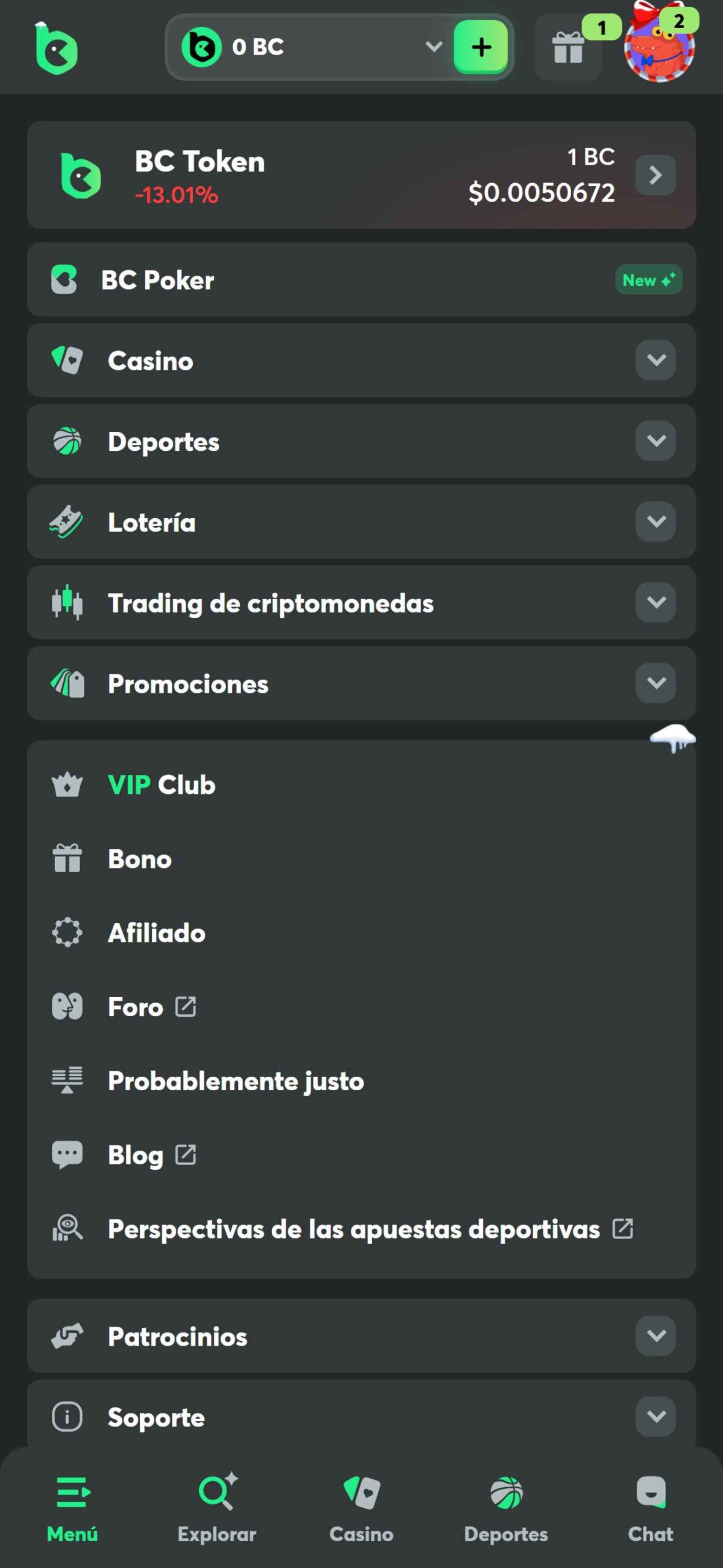 Uno de los puntos que facilita la navegación por BC.Game es su menú, donde puedes encontrar todas las secciones como apuestas deportivas, promociones, afiliados, juegos de casino, soporte en vivo y muchísimo más. Para las apuestas deportivas, BC.Game ofrece un sistema de búsqueda y filtros que te permiten encontrar eventos, equipos y deportes de manera rápida y eficiente.