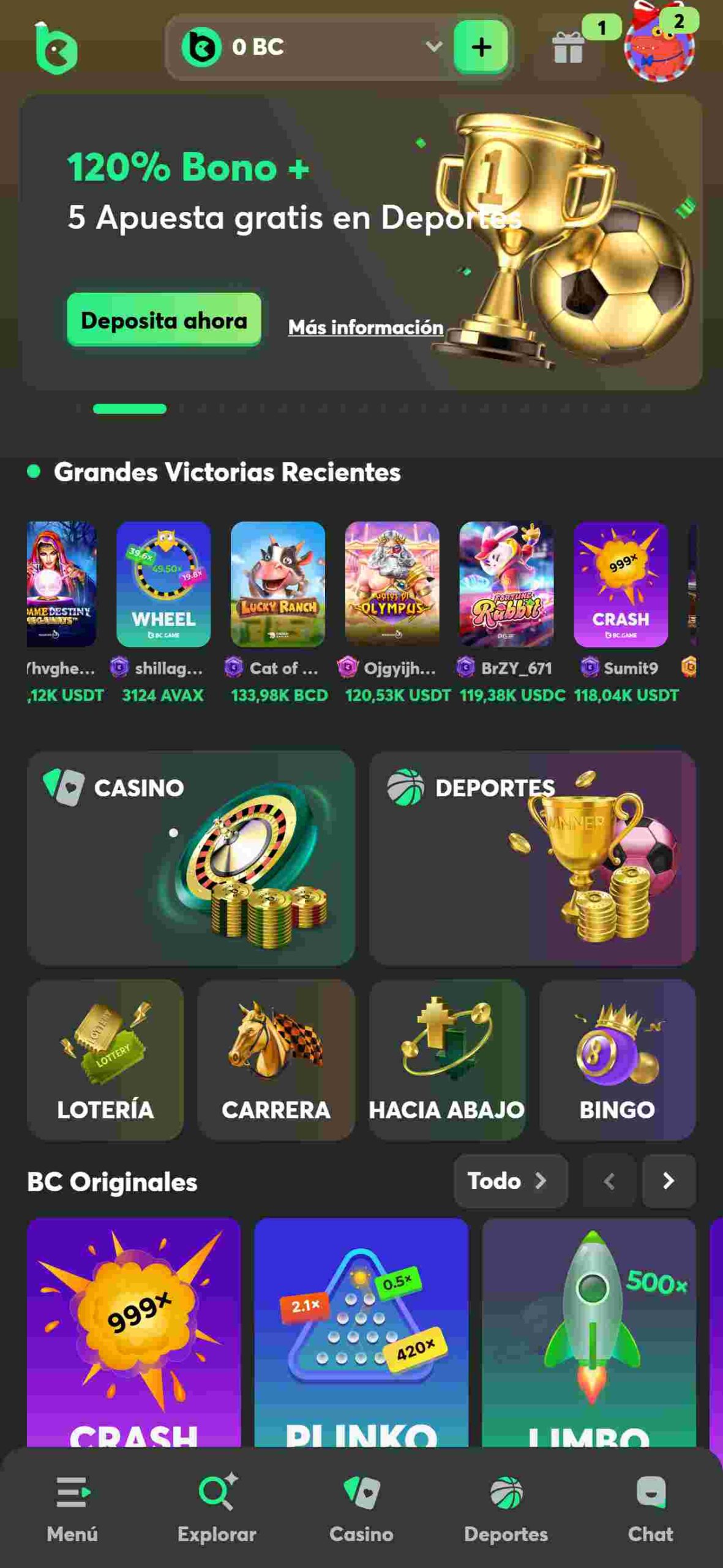 Antes de ser conocida como una casa de apuestas online, BC.Game empezó manejando los juegos de azar. Esta categoría o sección se ha hecho tan popular para el sitio que crean sus propios juegos (BC Originales) como tragamonedas, crash, dados, ruleta, video poker y más opciones.